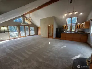 A 1.3-acre retreat offering space, privacy, and lifestyle. The main level features a welcoming foyer with wet bar, 2 bedrooms, a full bath, rec room, and utility room. Upstairs, enjoy a massive vaulted great room with brand-new carpet, propane stove, and abundant light, plus a private master suite with soaring ceilings, walk-in closet with in-wall safe, and chalet-style deck overlooking manicured gardens. Grounds include fruit trees, a decades-shaped canopy cherry, fountain, hedges, and outbuildings for storage. Additional amenities: 2 propane stoves, 2 water heaters, a 2-car garage, private well, no HOA, and proximity to Robin Hill Park and the Olympic Discovery Trail. A rare Sequim gem offering both comfort and independence.