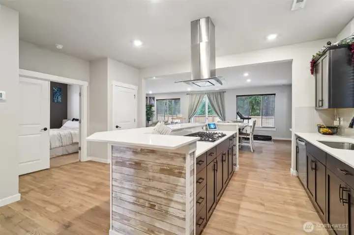 Discover the livability of Rainier Ridge! Enjoy sweeping views, community walking trails, and two neighborhood parks. The spacious Lexington floor plan offers generous living space w/ welcoming Great Room, formal Dining Room, & Gourmet Kitchen featuring large island w/ gas range, hood vent, quartz counters, stainless steel appliances, & undermount sink—perfect for the home chef. Versatile den/bedroom with an adjacent ¾ bath is conveniently located on the main floor. Upstairs, the primary suite impresses w/ dual walk-in closets & spa-inspired 5-piece bath. 3 additional bedrooms + large bonus room—currently used as media room—offer plenty of flexibility. Come see why Rainier Ridge is one of the area’s most desirable communities!