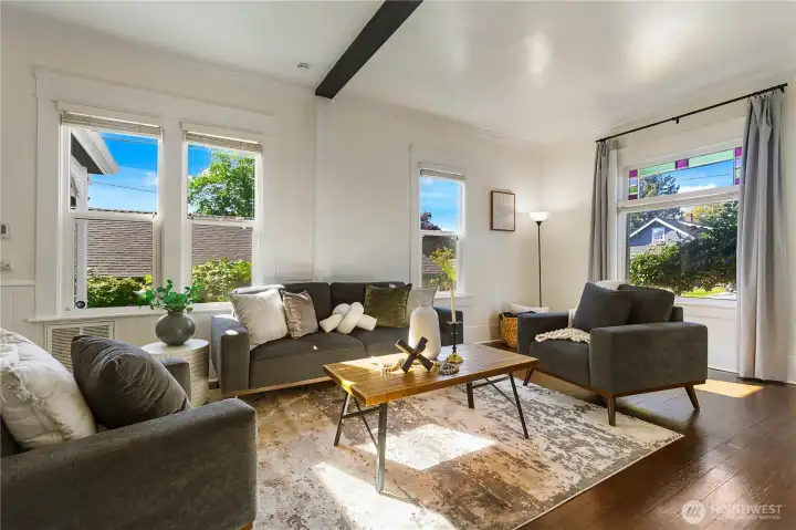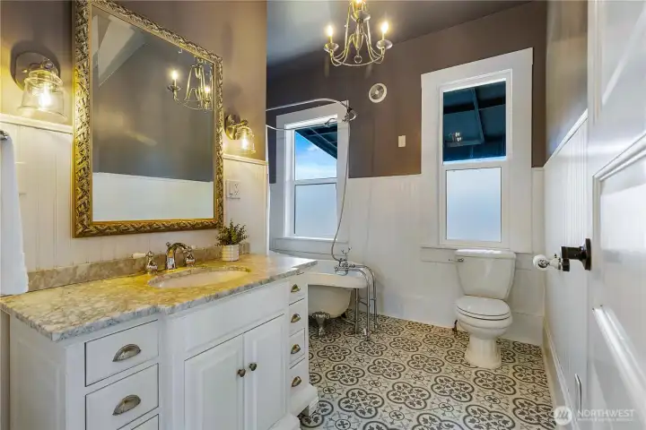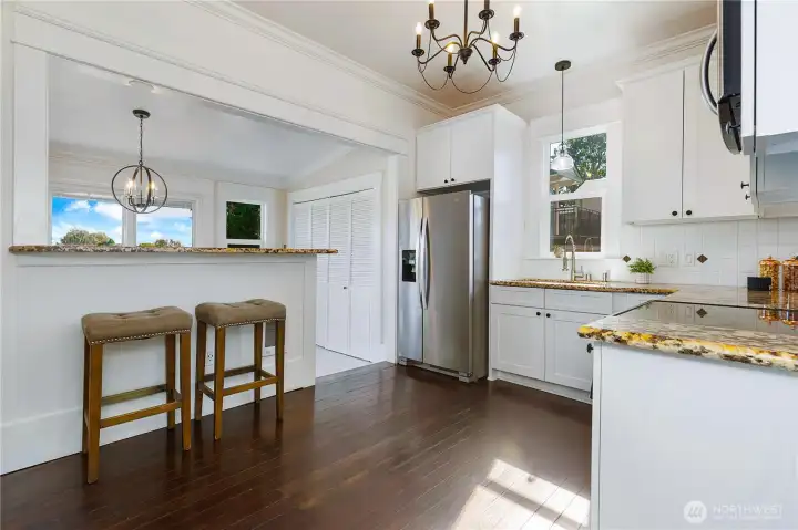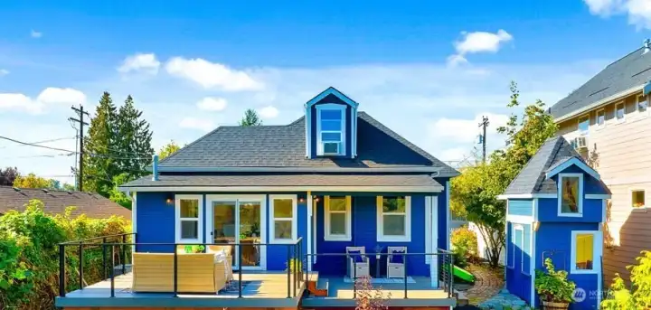 Charming 3 bed, 1 bath home in historic downtown Snohomish! Enjoy stunning Cascade views from your TimberTech deck in a fully fenced yard. Features include a new roof, A/C on main floor, clawfoot tub, stainless steel appliances, eat-at bar, and a walk-in closet with custom built-ins in the main bedroom. The large newly carpeted upstairs bedroom be perfect as a game room or retreat. The kitchen/dining area opens to the deck—great for entertaining! Mature grape vines and raspberries add character, while landscape lighting and a front yard water feature create a serene welcome. Walk to shops, cafes, Centennial Trail and parks—don’t miss this rare blend of history, comfort, and charm!
