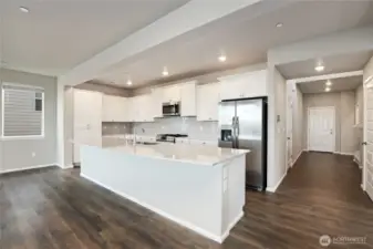 Beautiful move-in ready 4 Bed, 2.5 bath home in popular Soundview Estates. Views of the Seattle skyline, the Cascades, Mount Baker, and the Olympics! The spacious floorplan features a wide-open stainless kitchen/great room w/ white quartz counters, huge center island with breakfast bar, built-in work space, gas fireplace, & a half bath on the main floor. Upstairs you'll find the primary suite with large walk-in closet & spa-like 5-piece bath, three more bedrooms (two with walk-in closets) & spacious Jack-n-Jill bathroom. Heat pump for high efficiency heating & Central AC, smart wiring, spacious two-car garage, & nearby neighborhood playgrounds. Don’t miss this opportunity for style, comfort, convenience, & easy access to downtown Bremerton!
