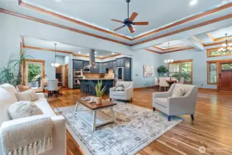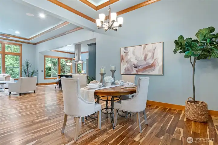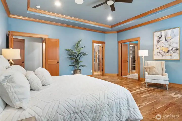 Discover the perfect blend of luxury & comfort in this spacious home featuring soaring ceilings and an open-concept design. The gourmet kitchen, offering double ovens, stainless appliances and granite countertops, joined with expansive living areas make entertaining a joy. A desirable main-floor primary suite offers privacy from the additional 3 bedrooms on the lower level. Immerse in nature and unwind on the deck with your own sauna and hot tub-ready setup or enjoy cozy movie nights with friends in the dedicated theater room. A 3-car garage, with car charging station and tons of storage add convenience, while the private, tree-lined setting creates your own peaceful nature retreat. Located in gated Horizon West, this home truly has it all!