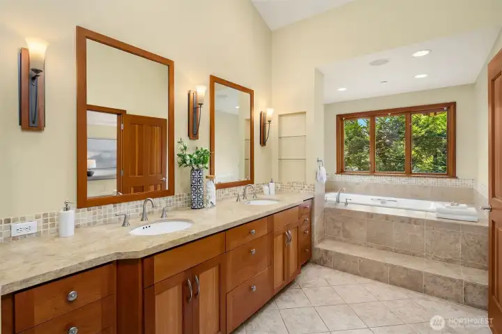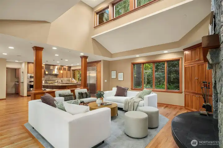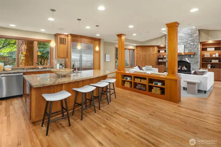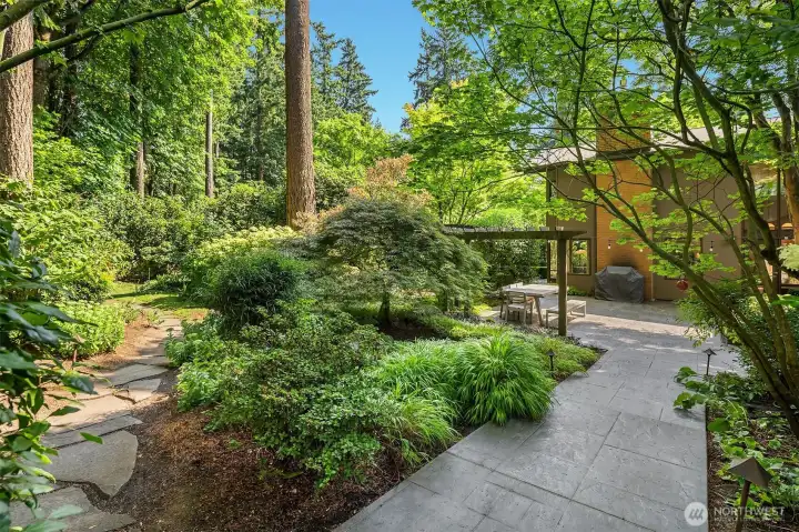 The private retreat of your dreams awaits in Island Point! This stunning estate is set amidst beautiful gardens and magnificent trees on a lovely level 1/3 acre lot, nestled down a peaceful lane near parks and schools. Step inside and discover quality craftsmanship at every turn–warm hardwoods, soaring ceilings & walls of windows framing the outdoors. Perfect floor plan features expansive living & dining spaces and two upper level bedroom wings: one, your luxurious primary suite with wonderful office or reading room; the other, 3 bedrooms & full bath tucked together + huge family room (or 2nd primary suite). Wraparound outdoor entertaining patio, fully fenced backyard, 3-car garage w/ EV charging & gym. Stroll to south-end shops & dining!