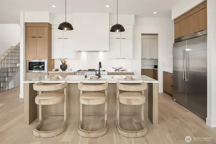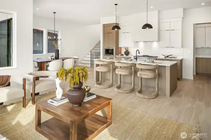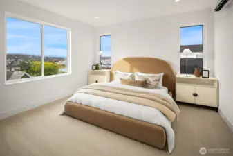Perched atop North Queen Anne, this Thomas James Home blends thoughtful design with everyday beauty. Soaring ceilings and expansive east-west windows invite natural light and offer unobstructed west-facing views from the main level. Primary suite showcases even more stunning vistas of Salmon Bay, Shilshole, and Elliott Bay. Modern architecture pairs timeless finishes with a gourmet kitchen featuring gas cooking, plus a two-car garage, mudroom, and pantry entry for effortless living. The lower level includes a private-entry MIL/ADU, great for rental income, multi-gen living, rec room, or a flexible office. Steps from parks, waterfront trails, shops, and with easy access to downtown, SLU, and major employers. Now move in ready!
