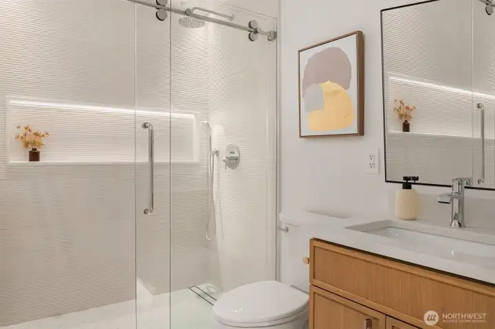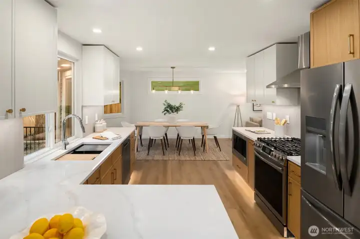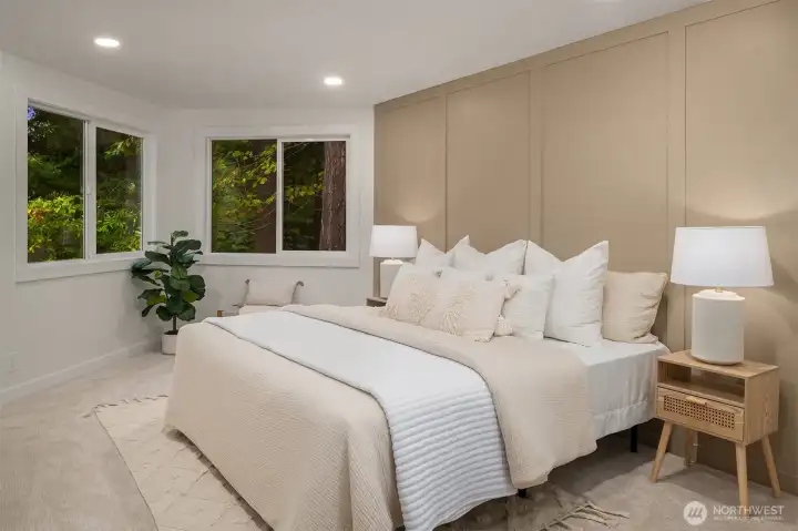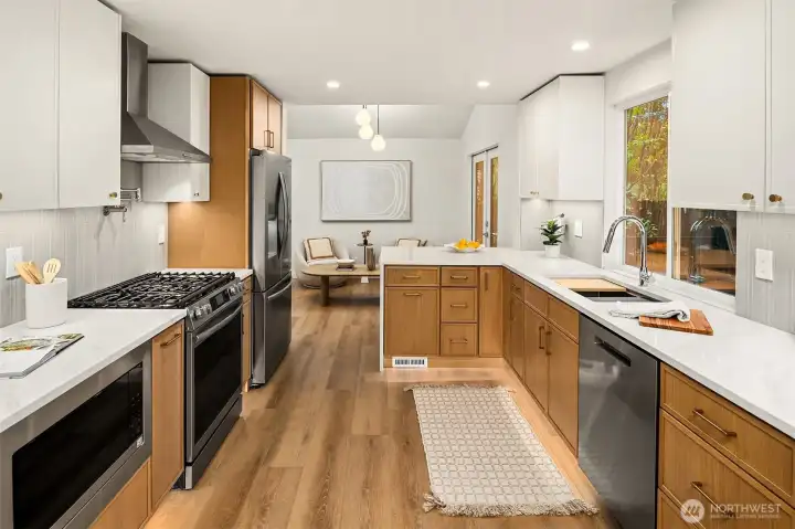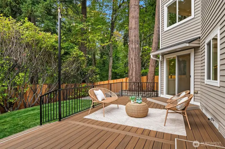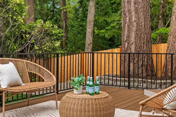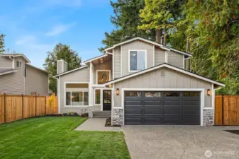 The perfect blend of traditional charm and modern elegance! Enjoy ultimate privacy behind mature laurel trees and a fully fenced yard in this beautifully reimagined home. It features a spacious driveway, expansive backyard, and a large new TREX patio—ideal for entertaining or relaxing outdoors - BETTER THAN NEW CONSTRUCTION! Inside, enjoy a modern open layout with custom tile work, designer finishes and West Elm lighting throughout - LUXURIOUS DETAILS! Stay comfortable year-round with a premium Trane furnace, BOSCH filtration system, A/C and heated tile floors. Located on a quiet street next to a kids park and the scenic North Rose Hill Woodlands Park walking trail. Minutes from Totem Lake, Downtown Redmond, and major tech campuses.