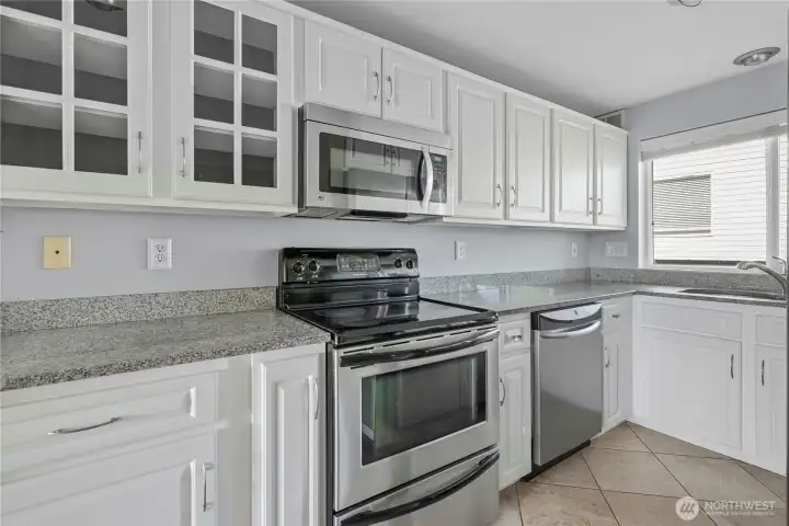 Beautifully updated 3 bedroom/1.75 bath condo with water views. Short walk to shopping, restaurants, and Windjammer Park. Dues cover water, sewer and garbage. Kitchen features granite countertops and SS appliances. Newer carpets in Primary bedroom. Murphy bed and attached tv in guest bedroom convey. New water heater. Custom built-in entertainment center with Electric fireplace. Deck w/storage. Covered parking with plenty of guest parking.