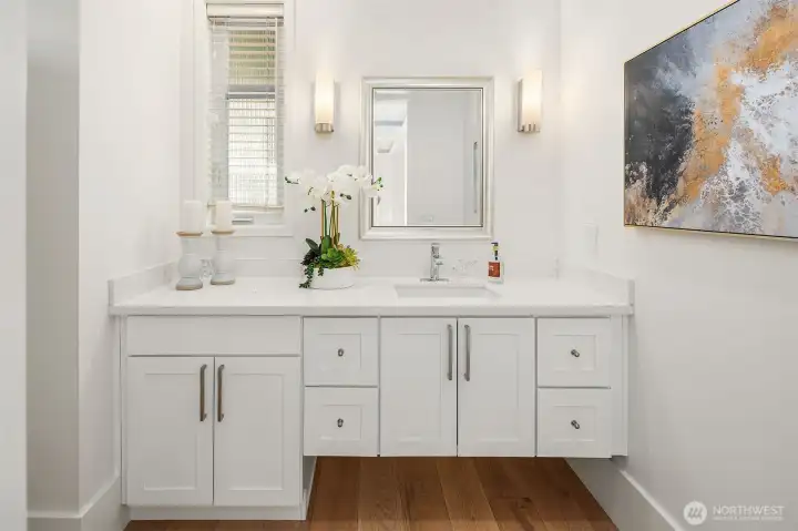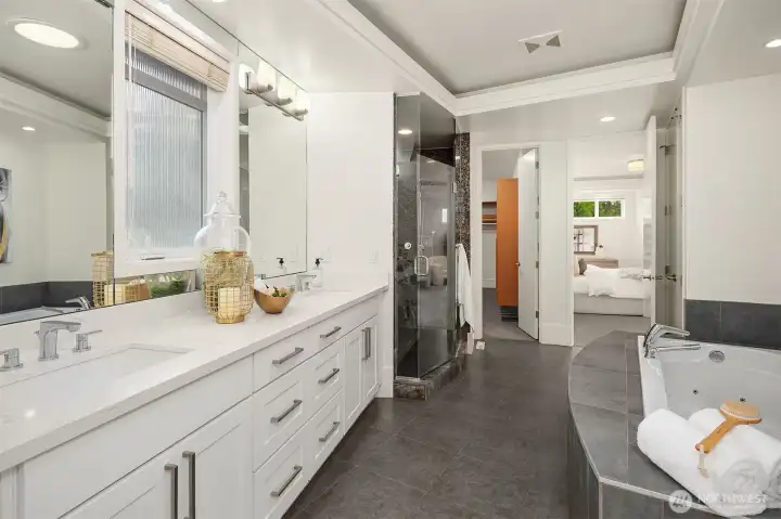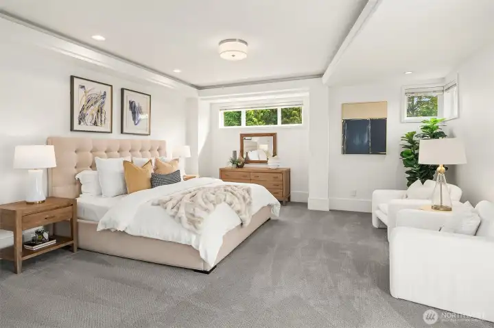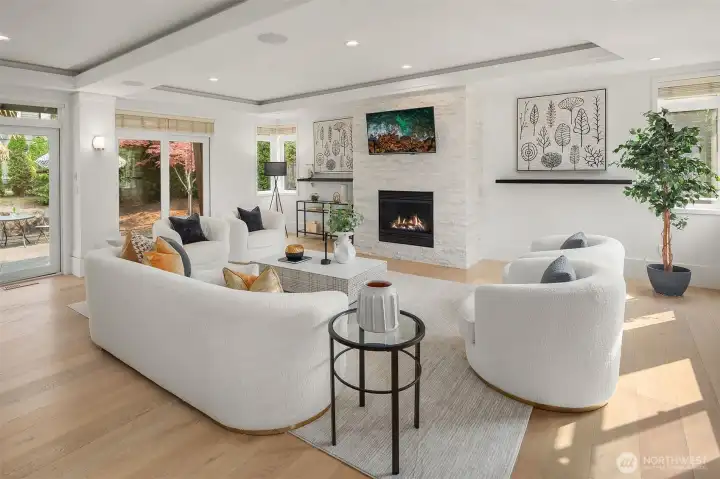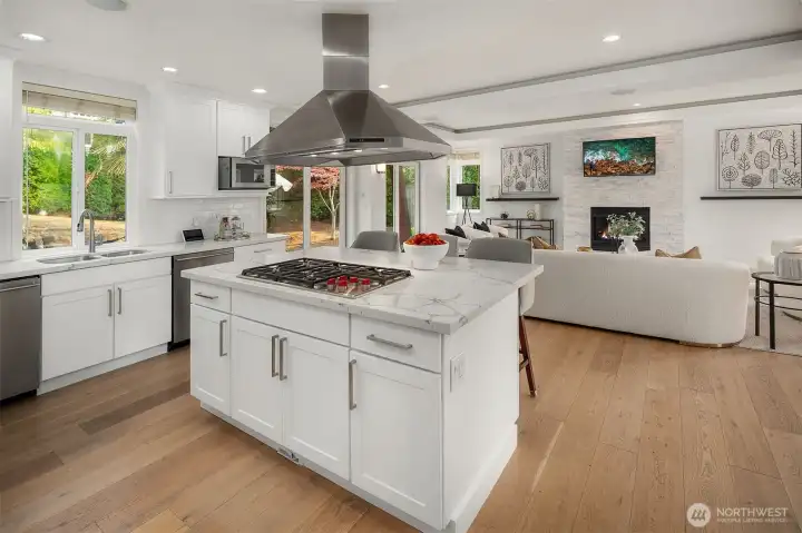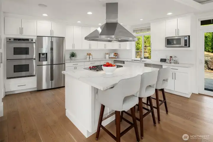 Don’t miss this beautifully updated contemporary home with a fantastic north end location near downtown shops & dining, transit, MI Community Center & Luther Burbank Park. Discover an ideal great-room floor plan & enjoy wide-plank hardwoods, coffered ceilings & gorgeous stone tile fireplace. Gourmet kitchen w/ high-end stainless steel appliances, incl. 2 dishwashers & large quartz island. Sliders open to covered deck & patio for easy indoor-outdoor living. Luxurious primary suite w/ 5-piece bath, walk-in closet & view deck upstairs along w/ 3 more spacious bedrooms. Main floor office & huge lower level rec room w/ kitchenette. 3-car garage w/ shop space & storage room. Tankless water heater & central A/C. Minutes to Seattle or the Eastside!