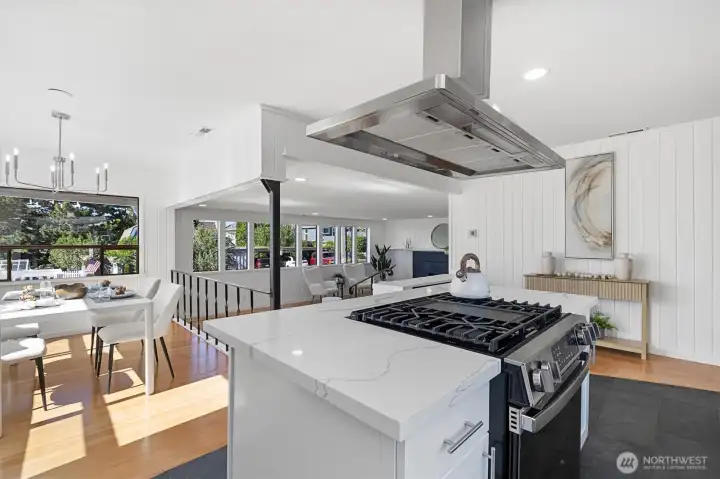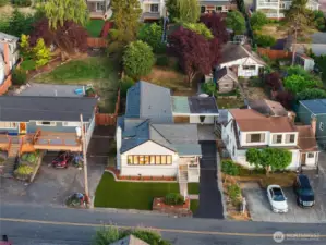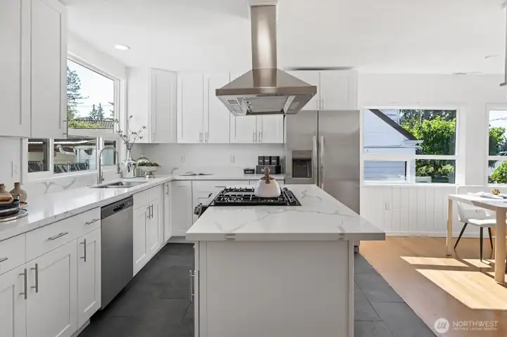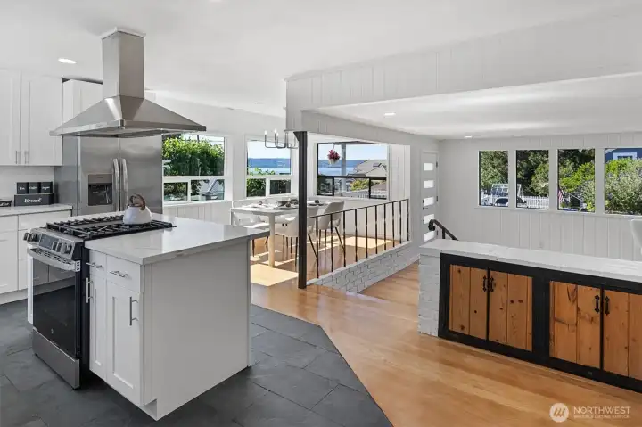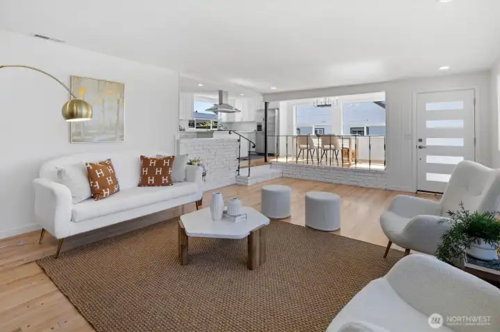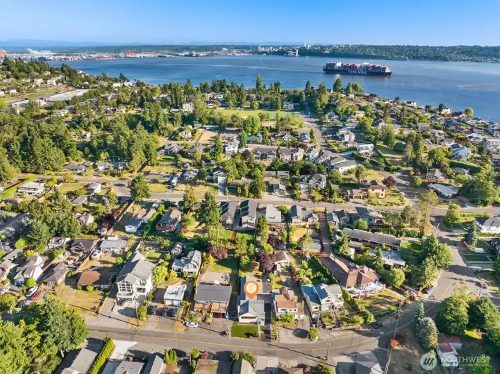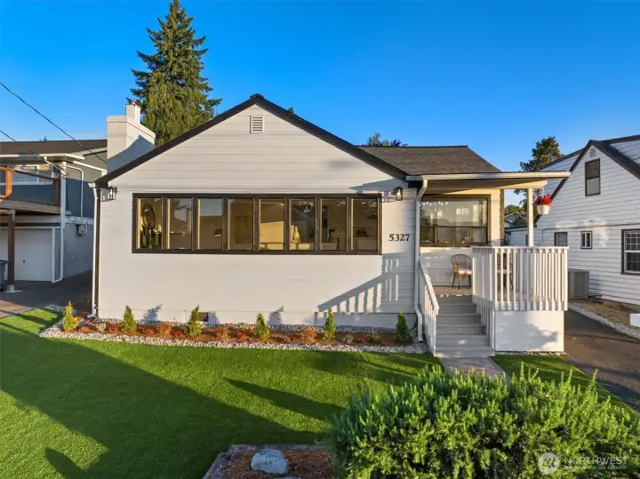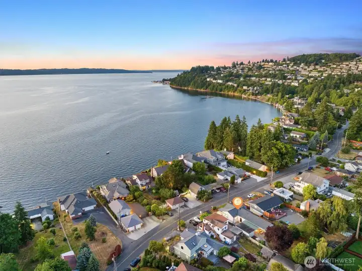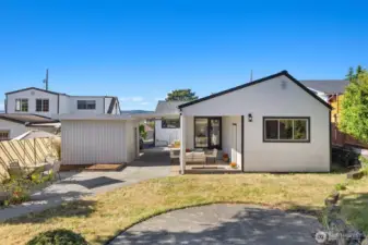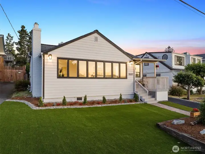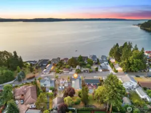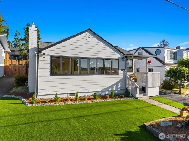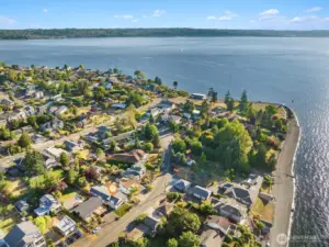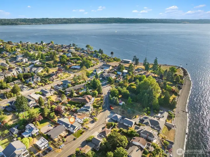 Welcome to this beautifully updated one-story home in desirable Browns Point! Upgrades include new siding, roof, furnace, mechanical gate & SS appliances. Savor the sunset & Sound views from the covered front porch. Inside, the light-filled living room boasts natural hardwood floors & a fireplace w/ custom feature wall & tile surround. Enjoy peek a boo views as you entertain in the dining area that flows into the kitchen w/ white cabinetry, quartz counters, slate flooring & center island. Primary suite houses a ¾ en suite w/ dual vanity & fully tiled walk-in shower. Utility room provides ample storage & convenience. Covered patio & terraced backyard create private oasis w/ ADU/DADU potential. Near BP Lighthouse, beach access & boat launch.
