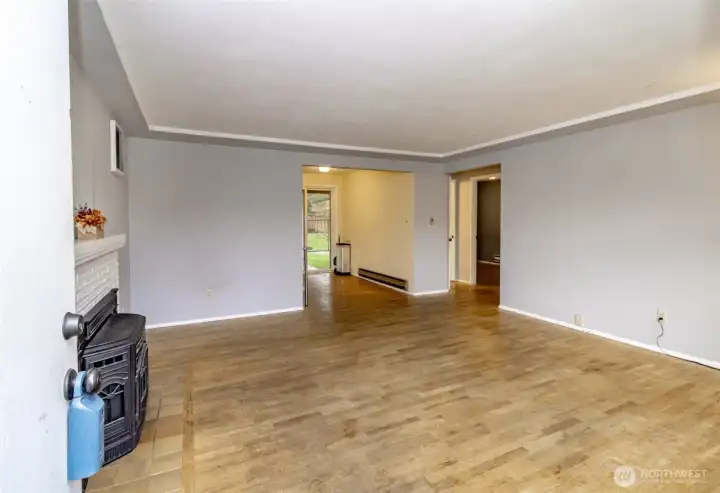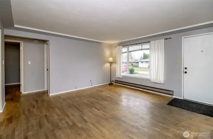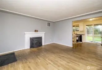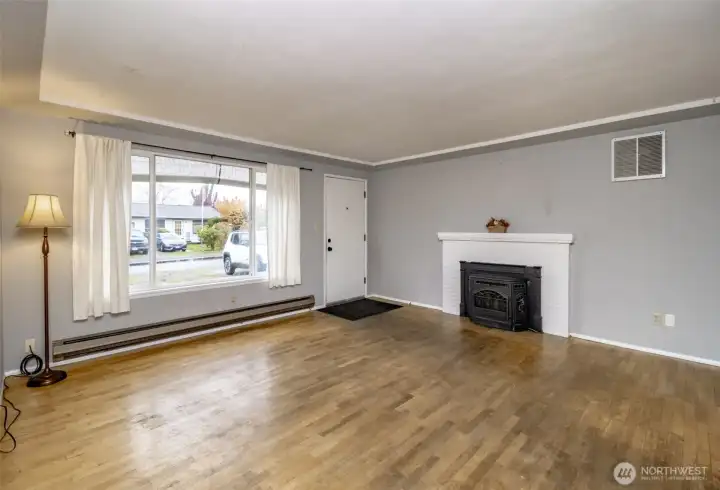 Great rambler ready for your personal touch in up and coming Fern Hill neighborhood! Original hardwood floors, cozy fireplace, open kitchen to living area and laundry/pantry right off the kitchen. The garage was converted to the 3rd bedroom, buyer to verify all information on that. Spacious covered patio in back for year round outdoor enjoyment and private backyard. Oversized lot for the area. Close to many conveniences, freeways, houses of worship and more!