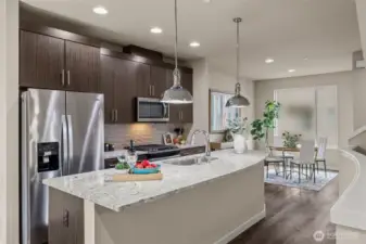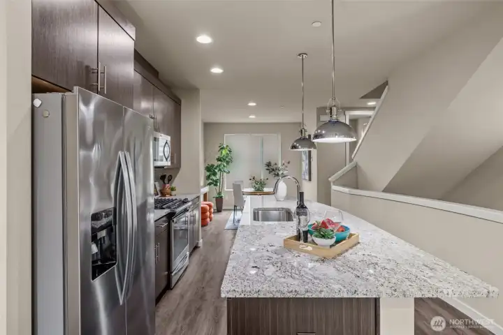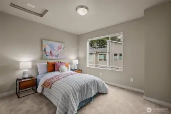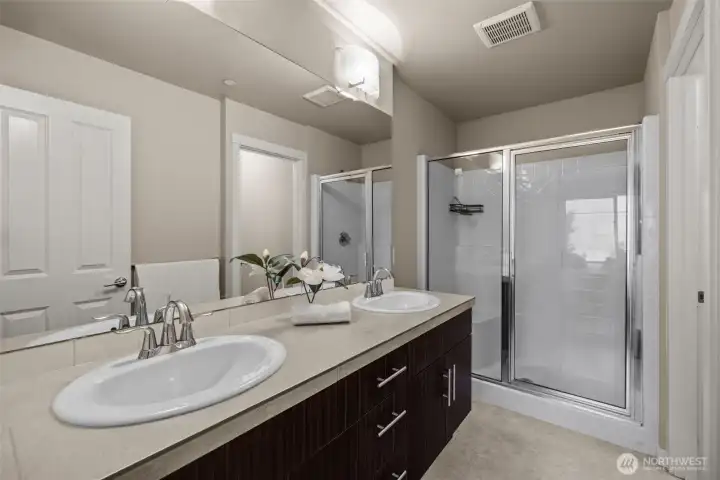 Welcome to The Parc at Creekside! This beautifully updated Urban Home features brand new paint, flooring, and window coverings throughout. The gourmet kitchen shines with granite slab counters, espresso cabinets, stainless steel appliances with 5-burner gas range, center island, and new soft-close drawers and closets. Relax by the tile-surround fireplace or retreat to bedrooms with their own private ensuite baths. Convenient upstairs laundry. Enjoy year-round comfort with climate-controlled heating and cooling. Added bonus: a 2-car garage with extra storage!