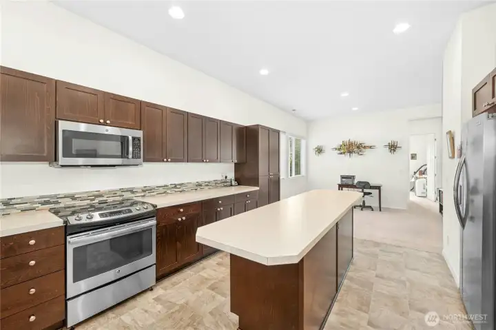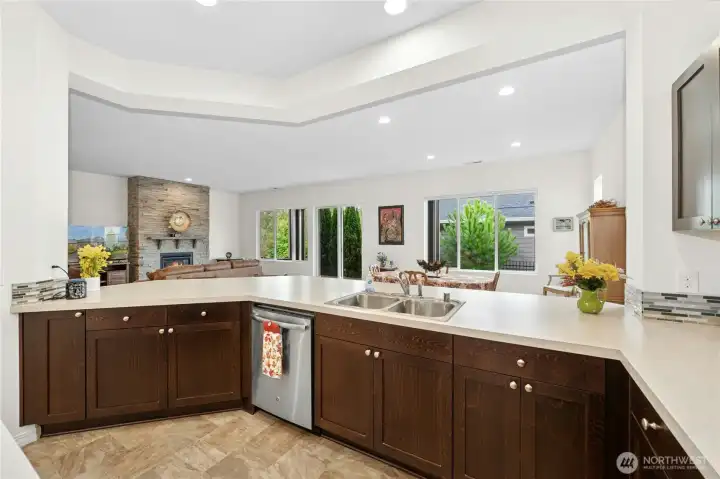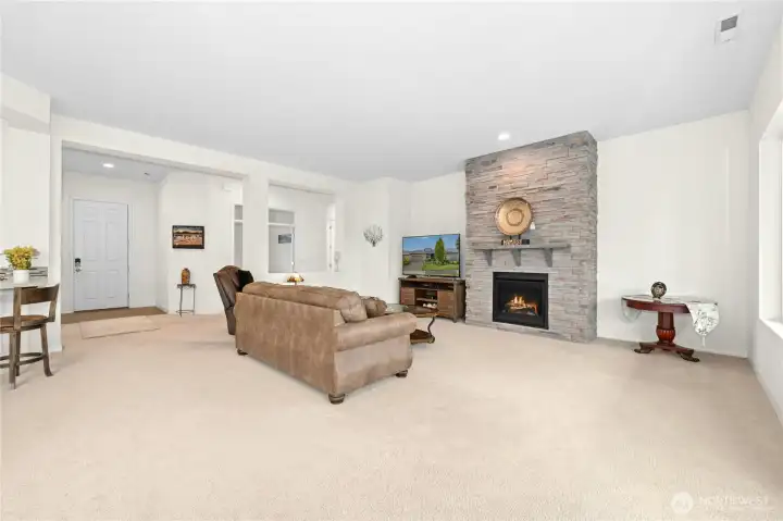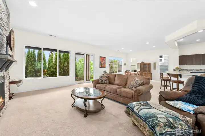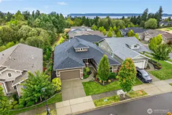 Welcome to the Messina plan residence at Whidbey Passage in Jubilee! Beautiful open plan welcomes with great-room concept offering a huge breakfast bar and spacious kitchen with tons of counter space. 10' high ceilings throughout this light and bright home with 2 bedrooms plus office through French doors. The great-room boasts a gas fireplace, formal dining and a wall of windows with greenbelt view. Enjoy the covered back patio and professionally landscaped iron-rod fenced-in backyard with irrigation. Community amenities include golf, tennis, Jubilee Lodge with indoor pool, hot-tub, fitness and activity center. Close-by Puget Sound private beach access and parks via nearby trails. Peaceful, inviting, proximity to I-5, shops and more!