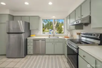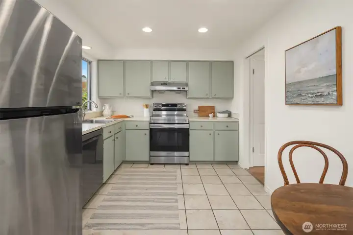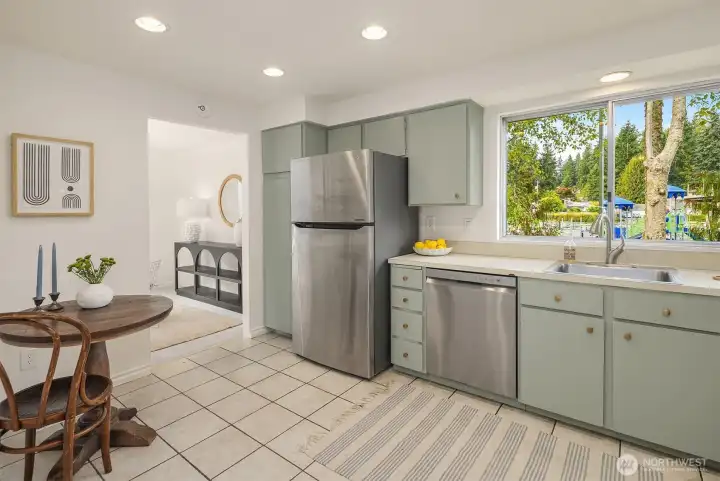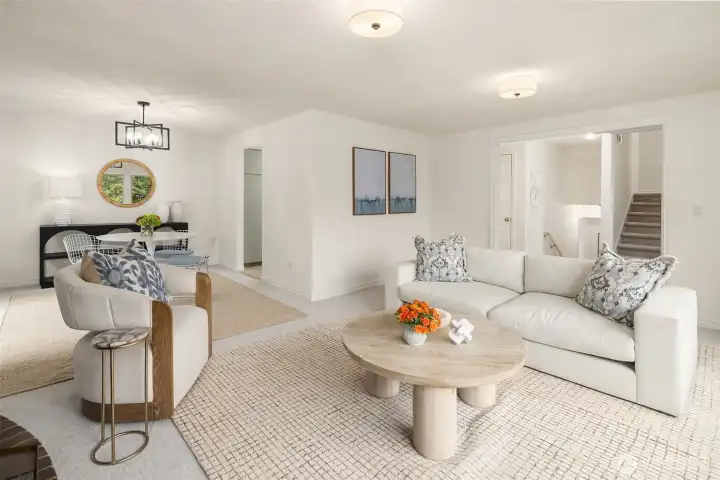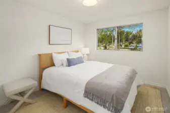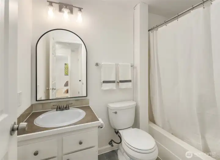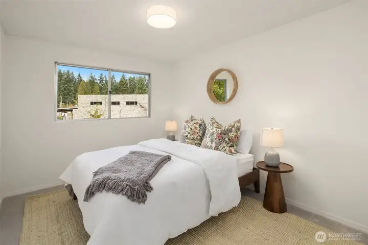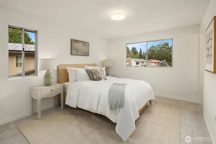 Tucked at the end of an inviting cul-de-sac, this contemporary tri-level offers space, updates & convenience. Light-filled living spaces feature a brick fireplace & a substantial bay window that opens wide to bring the outdoors in. Sliding glass doors extend the dining area to a spacious deck overlooking the backyard, perfect for gatherings. The sweet kitchen enjoys garden views & easy flow to the main living area & outdoor deck. Upstairs offers a primary suite with ¾ bath & 2 additional bedrooms with a shared full bath. The lower level provides flexible space with laundry & outdoor access. Two-car garage & beveled cedar siding. Close to parks, schools, groceries, I-5 & upcoming light rail. This home is move-in ready & pre-inspected!