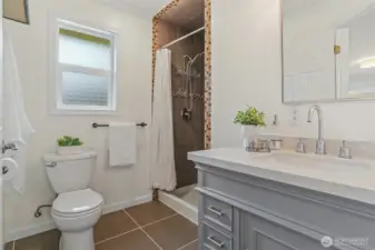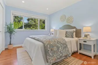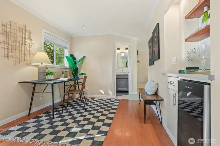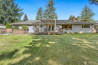 Beautiful Edmonds single-level contemporary residence seamlessly blends thoughtful modern updates w/ timeless charm. This inviting 3-bed, 2-bath home showcases a chef’s kitchen w/ stunning granite countertops, custom cabinetry, Bertazzoni gas range, & spacious dining area. Light-filled living room w/ large picture window & cozy gas fireplace flows into the dining room, complete w/ dry bar — perfect for entertaining. French doors open to a private, tree-lined backyard retreat featuring a spacious Trex deck, adjustable pergola, & hot tub. Ideal for gardening, pets, or simply relaxing. Well-maintained original hardwood floors run throughout, central air conditioning, dedicated laundry room, & large EV-ready garage with abundant storage.