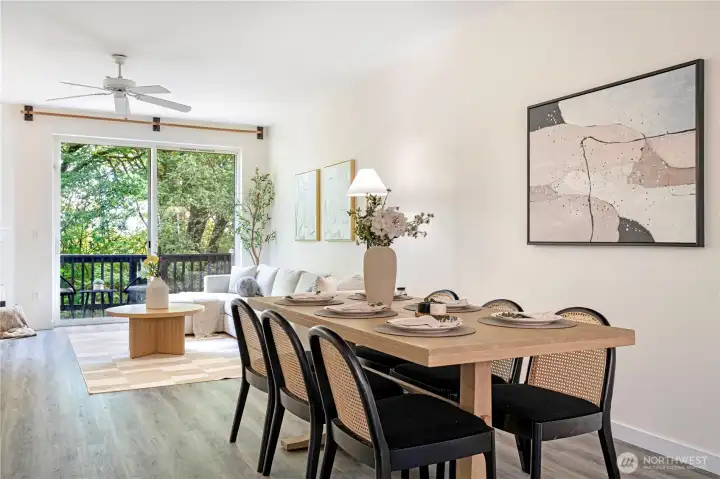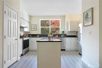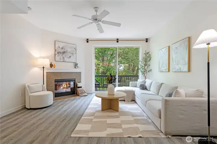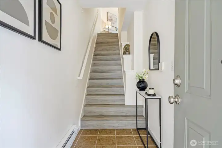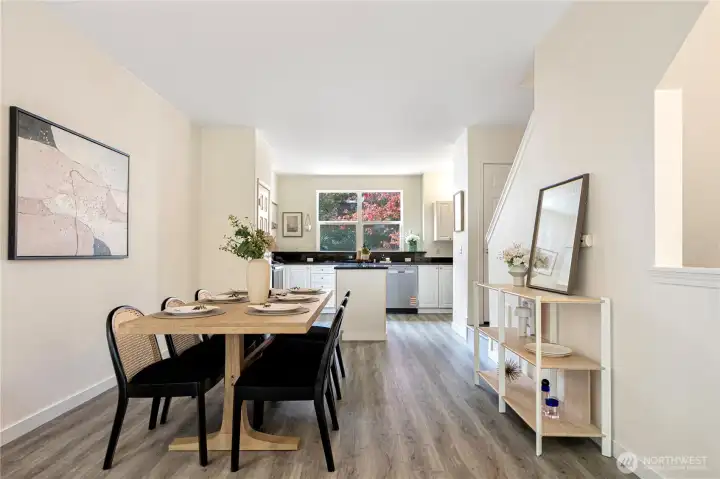 Freshly updated Wildwood townhome backing to a serene greenbelt! This 2 bed, 2 bath home shines with brand new flooring and interior paint throughout. The open main floor offers a bright living and dining area, a well-appointed kitchen with new stainless steel appliances and center island, plus easy flow to a private balcony with peaceful tree-lined views. Upstairs, vaulted ceilings enhance both bedrooms, including a spacious primary with ensuite. Attached garage as well as designated spot on the driveway. Community amenities include pool, spa, fitness center, and clubhouse. Commuter’s dream near I-5, 405, 1Line light rail. Alderwood Mall, Costco, upcoming T&T in November. No rental cap—ideal for owners or investors!
