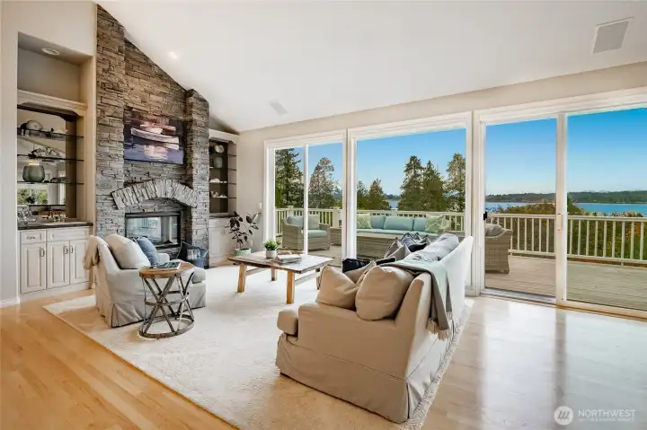 Perched above Drayton Harbor with sweeping city, water, & mountain views, this lovely custom home is filled with thoughtful upgrades. Main-floor living features a private primary suite w/ spa bath, sauna, & dual closets, plus dedicated office w/fireplace. Vaulted living room frames the view w/ stone fireplace, flowing into a spacious dining room & chef’s kitchen w/ walk-in pantry. Downstairs-two complete guest suites, a large bonus room w/ second kitchen, abundant storage, & additional office offer flexibility for every lifestyle. Peace of mind comes w/ all-new essentials—roof, interior/exterior paint, air conditioning & more. With a dream garage storage system, lush landscaping, & privacy, this home is move-in ready & designed to impress.
