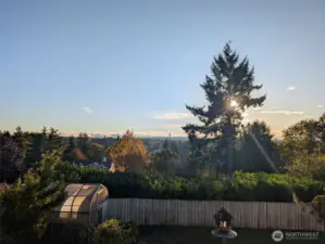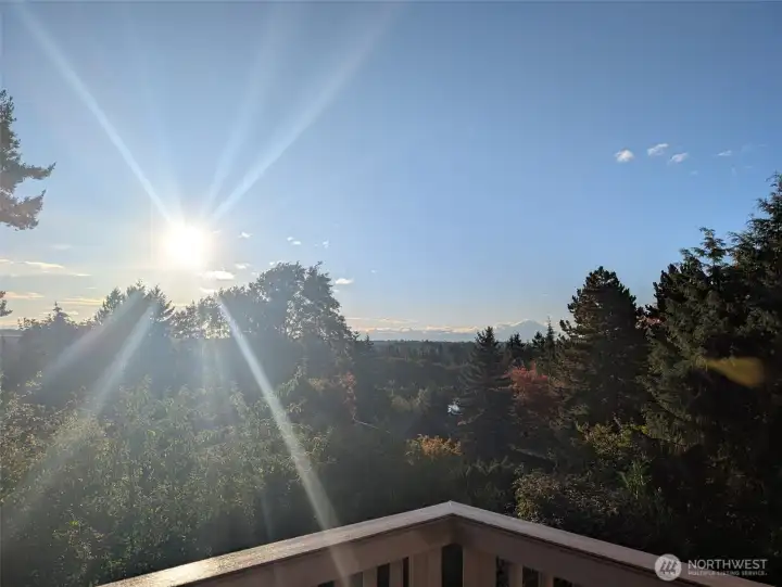 Welcome to this peaceful neighborhood with clear views of Mount Rainier and the Cascades from the spacious dining and family rooms! A lovely water feature greets you at the entry. This popular Mid-Century Modern home offers a newly updated lower-level MIL suite with full kitchen, laundry, and direct access to a large patio. Features include a heat pump, central vacuum, fireplaces up and down, hardwood floors under carpeting, and a charming wood stove. The fully fenced backyard showcases established roses, fruit trees, and a playhouse, with covered RV parking along the south side. An oversized heated two-car garage includes EV charging, plus an additional carport. Offered by the original owners, this home is ready for new memories!