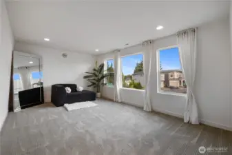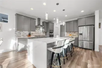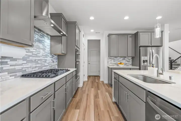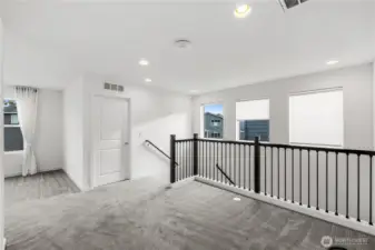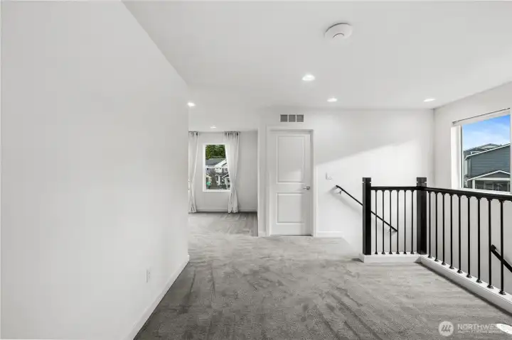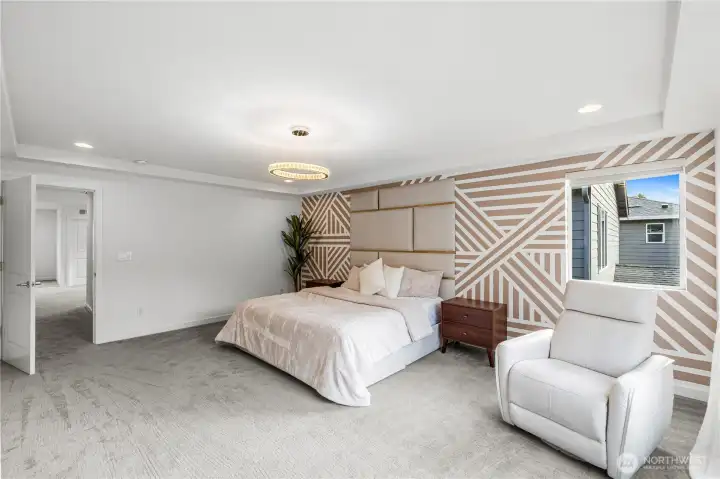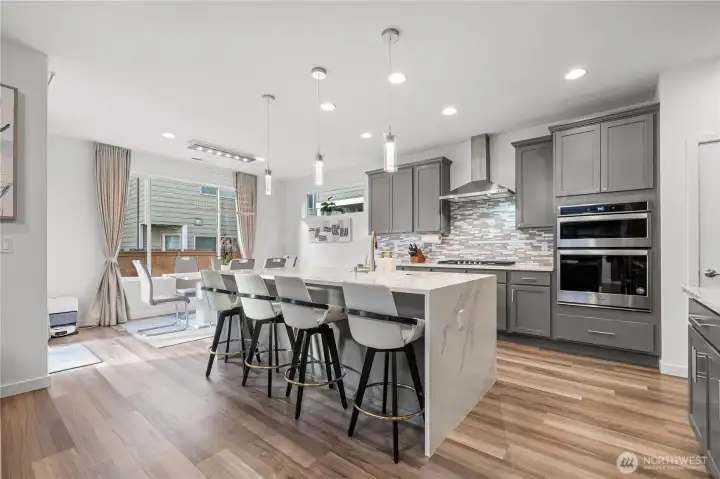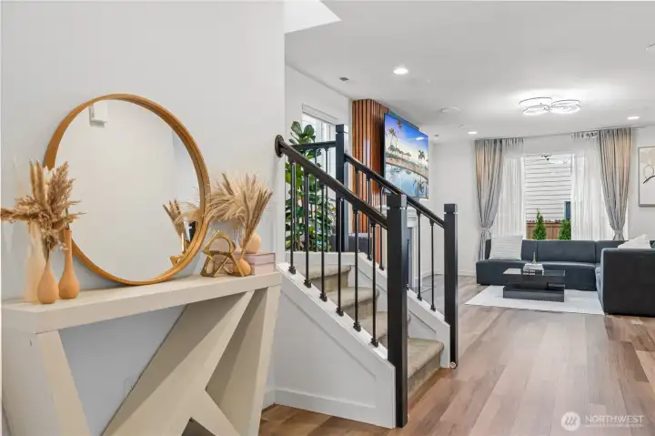 Experience modern living in this beautifully upgraded home! Featuring 3 beds, 2.5 baths, an airy open floor plan, and a versatile loft that can serve as a family room, office, or 4th bedroom. The chef’s kitchen shines with a large island, tile backsplash & stainless appliances. The primary suite is a retreat with walk-in closet, accent wall & spa-style shower with bench. Smart switches, in-ceiling speakers, modern railings, upgraded carpet, designer lighting, central A/C & a tankless water heater. Low-maintenance yard with premium turf, covered patio, and a playground across the street. 2-car garage with ceiling storage. Close to parks, trails, shopping, Ash Way Park & Ride, Light Rail & I-5/405.