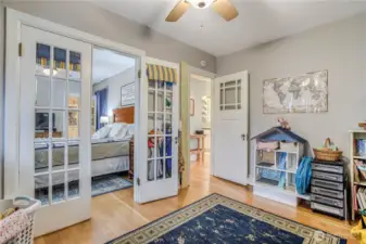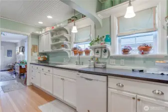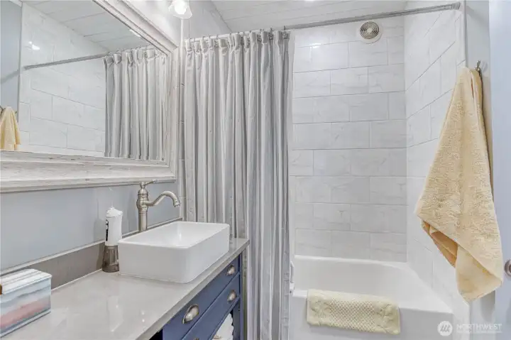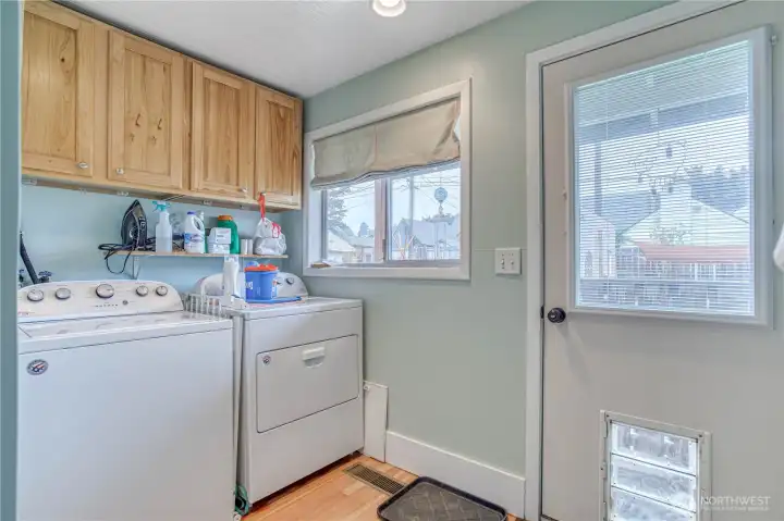 ADORABLE move-in ready cottage. Thoughtfully planned updates are done top to bottom. This home is CHARMING! Updated kitchen and bathrooms. Solid surface counter tops, bead board ceiling, open shelving, hardwood floors and a walk-in pantry make the galley kitchen a dream. New heat pump, upgraded electrical panel and wiring, egress windows in the basement, exterior and interior paint. A wood burning fireplace insert adds charms and saves heating costs. Terraced low maintenance landscaping in the front yard with a drip system. The front porch features tasteful tile and trex decking. Fenced backyard with garden space and windsail covered patio. Private driveway and single car garage. 4th bedroom off primary can be bedroom, office or playroom.