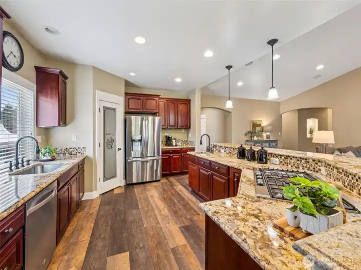 Beautifully crafted home in Bohemian Estates! Thoughtfully designed to live like a rambler, this stunning residence showcases high-end finishes & an inviting open floor plan. Spacious living room, ideal for cozy evenings, or unleash your inner chef in the expansive, gourmet kitchen. Main-floor office & formal dining area for added function.The primary suite offers a luxurious ensuite featuring heated floors,large soaking tub & a generous walk-in closet. Upstairs, a versatile bonus room w/a full bath provides the perfect space for a media room or optional 4th bedroom. Step outside to enjoy the large, fully fenced backyard complete w/a gazebo, storage shed, & boat/RV parking—perfect for outdoor living.Access to Inlet Island park & boat launch