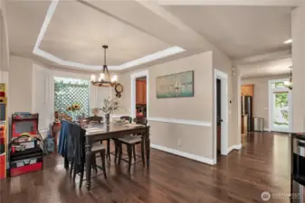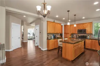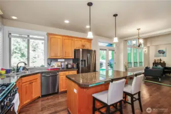 Step into luxury in this extraordinary home in the coveted Meridian Campus Community. Situated on the 3rd tee of the golf course, this lovely home features vaults, formal living, dining, and family room with extensive custom woodwork. Gourmet kitchen features custom cabinets with pull out sliding drawers, granite counters, SS appls, island, adjacent butler's pantry w bev fridge and it's own pantry! Family room has soaring ceilings, gas fp and a wall of windows for plenty of light. Primary features soaking tub, lg shower and huge walk-in closet. 3 other bedrooms complete the spacious upstairs. Backyard features large covered area, extensive landscaping for privacy. Lg tandem 3 car garage complete this package. Close to I-5.