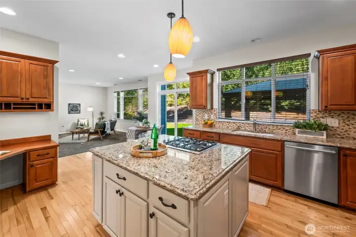 Well-maintained home in the beautiful McCormick Woods community! This home features hardwood floors on the main level and a versatile bonus room with a closet that can serve as an office or guest space. The bright kitchen offers granite countertops, stainless steel appliances, and a large island with a gas cooktop, opening to the family room for easy entertaining. Enjoy a separate dining area and formal living room for added space. The primary suite includes a private alcove, large bath, and its own deck. The private backyard features mature landscaping and a storage shed. An oversized two-car garage provides plenty of space for parking and storage. Enjoy all the amenities golf, clubhouse dining, walking trails, and more! Welcome Home!