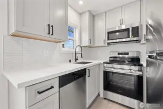 Charming & fully remodeled in downtown Renton offering the perfect blend of style, function, & opportunity—whether you choose to call it home or take advantage of its rental potential. Modern upgrades throughout—new roof, siding, windows, permitted updated electrical & plumbing and more! Inside, new flooring, doors, trim, finishes & fixtures create beautiful living spaces. Kitchens shine w new shaker cabinets, quartz counters, SS appliances & tiled backsplash. Featuring bright bedrooms, updated ensuite baths w all-new modern finishes, versatile bonus rooms or home office & dedicated laundry areas. Enjoy the freshly landscaped low maintenance yard -create your own gardeners paradise! Close to shops, dining & amenities!