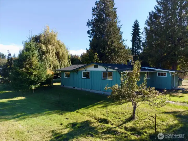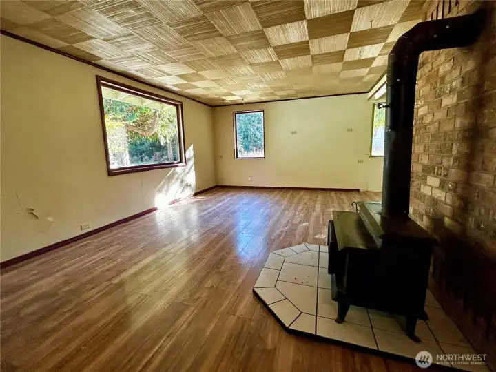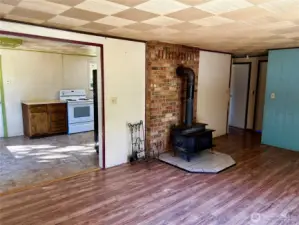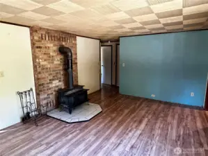Charming country home on a spacious ½-acre lot! This 3-bedroom, 2-bath home features hardwood floors and a large living room centered around a cozy wood stove — perfect for gathering on cool evenings. The property includes a detached garage with a finished room, ideal for a hobby space, studio, or guest area. Enjoy the peace and privacy of rural living with plenty of space for gardening, fruit trees, or chickens. With a little TLC, this home has the potential to shine and become your perfect country retreat!