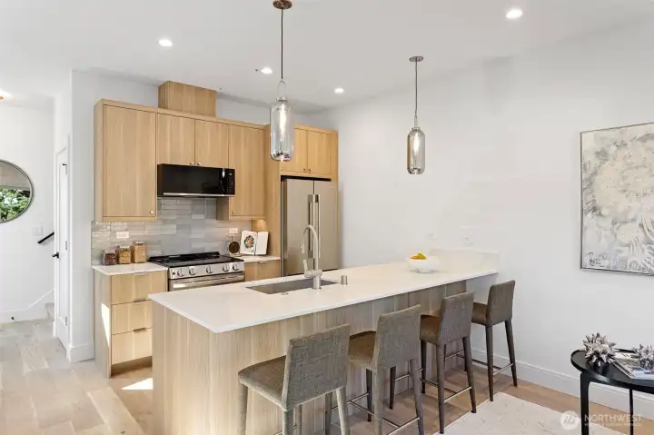 Welcome to this brand-new 5 home community in Ballard by Roland Development—where modern design meets everyday comfort. Featuring 2 bedrooms and 2.25 baths, this home offers a bright, airy layout highlighted by vaulted ceilings and abundant natural light. The stylish kitchen is crafted with quality finishes, while the open living area creates a perfect setting for relaxation or gatherings. Step outside to a private, fully fenced yard with low-maintenance turf—ideal for pets, play, or entertaining. A dedicated parking space with EV charging adds convenience, and the home’s location places you just moments from Ballard’s vibrant shops, dining, and nightlife. A perfect balance of charm and functionality awaits!