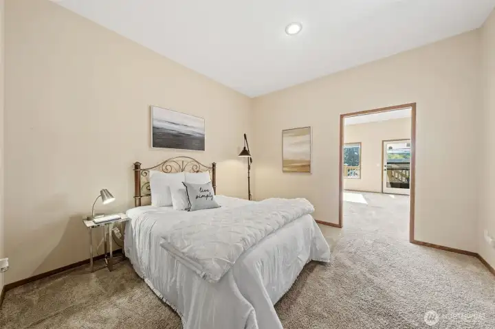 Extraordinary high-bank waterfront condominium in the coveted Narrows View community, featuring breathtaking views of Puget Sound and Mt. Rainier. This gated enclave offers a unique blend of tranquility, luxury, and convenience. A ground-floor unit offering effortless living, A/C, a new updated kitchen, spacious living room with walls of windows and private deck showcasing unobstructed water views and the iconic Narrows Bridge, 2nd bedroom and another full bath. The lower level features a 3rd bedroom/office suite with separate entrance and 2nd view deck, storage room, huge bonus room and 2-car garage accessed from inside the home. Quick access to charming Gig Harbor, medical care, shops, boutiques, and restaurants, I-5 and Sea-Tac Airport.