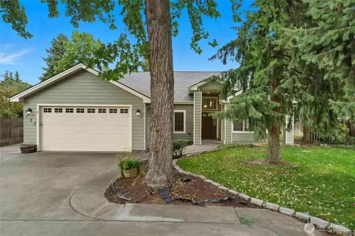 Private & Secluded. Tucked away behind a wooded, private front yard, this beautifully maintained home is a hidden gem.The expansive driveway offers ample parking for guests & an RV, making entertaining guests a breeze. Situated on a large fenced lot you will enjoy lush greenery & a sense of seclusion that is rare to find. Inside, the home features a thoughtful layout of formal liv rm & din rm, plus a spacious great rm off the kitchen complete w/a gas fireplace, and french-doors that lead to a large patio for additional entertaining space. The primary suite is a retreat w/full en-suite & jacuzzi tub. 3 additional large bd rms & 2nd full bath. This home is move-in-ready-don't miss the opportunity to make this serene retreat your very own.