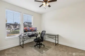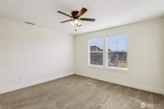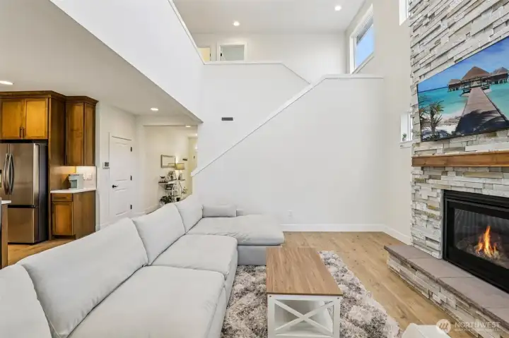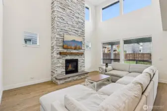 Welcome to Cedar Heights, with Cedars Trails at Salmon Creek across the street. This immaculate, lightly lived-in 4-bedroom, 3-bath home offers both style and comfort, with a main-level bedroom. The great room shines with soaring two-story ceilings, a dramatic wall of windows, and a floor-to-ceiling stacked stone fireplace.The kitchen features oversized quartz counters, warm wood-grain cabinetry, built-in ovens, and walk-in pantry. Upstairs, the primary suite with its generous proportions, ensuite with soaking tub, and walk-in tiled shower. Two additional bedrooms, a full bath, and a large dedicated laundry room complete the upper level. Outdoors, enjoy a covered patio and private yard for play or relaxing! Builder Warranty still in place!
