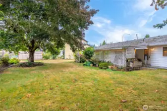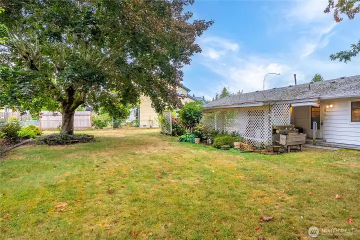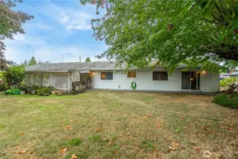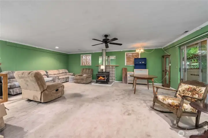 One level home w/ 3 beds, 1.5 baths, and about 2000 sf ready for new owners' vision. As you enter, large living room invites you in and flows into the kitchen. Plenty of cabinets and counter space for all your cooking needs, plus huge BONUS ROOM off the kitchen w/ woodstove and slider to bkyd. All 3 bedrooms are located at the end of the hall, next to the full bathroom. Convenient half-bath opens to one bedroom and the laundry room. Original Hardwood flooring in most of the home! Fully-fenced lot w/ mature landscaping offers room to add a garden or any personal touch. SHOP in the back has power/lights and is insulated w/ 2nd floor storage. Covered patio perfect for summer entertaining. Oversized Carport and RV parking on the side! NO HOA.