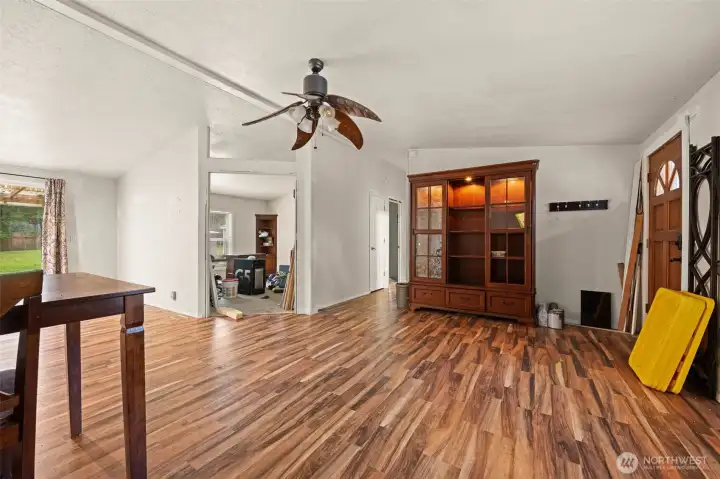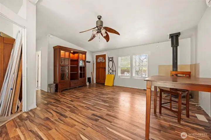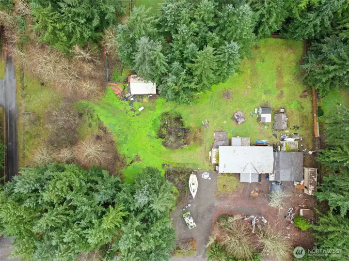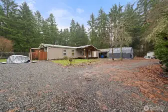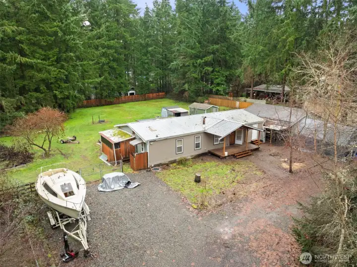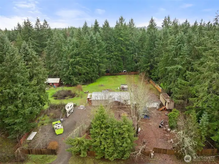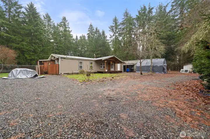 Welcome Home to your mini-homestead! 3 bedroom, 2 bathroom 1,510 SF single-level home on 2 acres! Barn, detached garage with large shop and other outbuildings. Fully fenced with plenty of room for all your creatures! Large covered front deck, perfect for relaxing. Walk into the entry and living room, with dining room and kitchen with additional eating space. Laundry area leads to full outdoor cooking space with grill, smoker and flat top. Spacious primary bedroom includes en suite with plenty of space. Extra bonus room could be used for a den or office space. Two additional bedrooms and a full bathroom complete the home. Welcome to the possibilities!