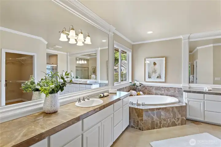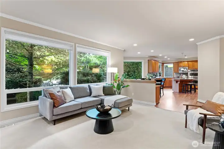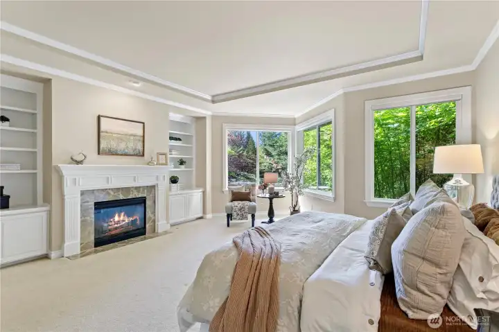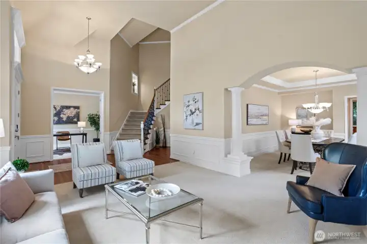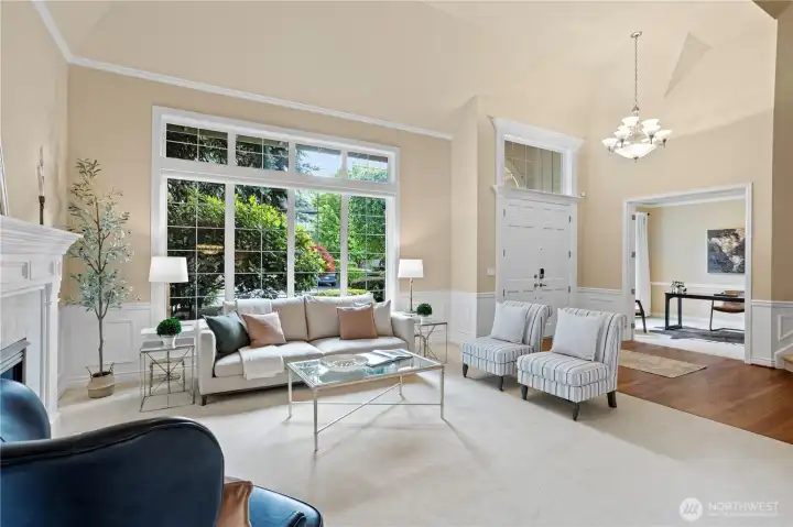 Welcome to this stunning Buchan home in coveted Beaver Lake Estates. Open the door to witness towering vaulted ceilings, refinished hardwoods, and a sunlit open layout. Chef’s kitchen boasts slab granite, custom cabinetry, stainless appliances, and a large island. Main floor guest suite with attached bath offers ideal multi-gen flexibility. Upstairs, the expansive primary suite includes a five-piece bath and dual walk-ins, plus 3 more bedrooms and a bonus room. Enjoy a serene, park-like backyard retreat perfect for entertaining this summer. Recent upgrades: newer furnace, A/C, hot water tank, fresh paint, 50-year roof, and refinished floors. Close to trails, Beaver Lake, and Issaquah schools. This is Pacific Northwest living at its best!