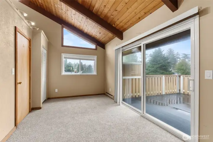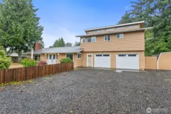 Fresh new carpet and a spacious double lot set the stage for this Westport home with 4 bedrooms, across nearly 2,000 sq ft. Main level offers a living room w/wood stove and built-ins, open dining area, & kitchen with SS appliances. Upstairs, a landing with wet bar and 2 bedrooms both with deck access via sliding doors, & vaulted ceilings, one with ensuite & the other w/a designated bath. Updates include ductless mini-splits, most windows, garage doors, propane tank, and portable generator. Two car garage & shed for storage. Level, 14,000sqft double corner lot provides space for gardening, entertaining, and potential development. Just minutes from the beach, shops, and restaurants - ideal as a primary home, getaway, or short-term rental.