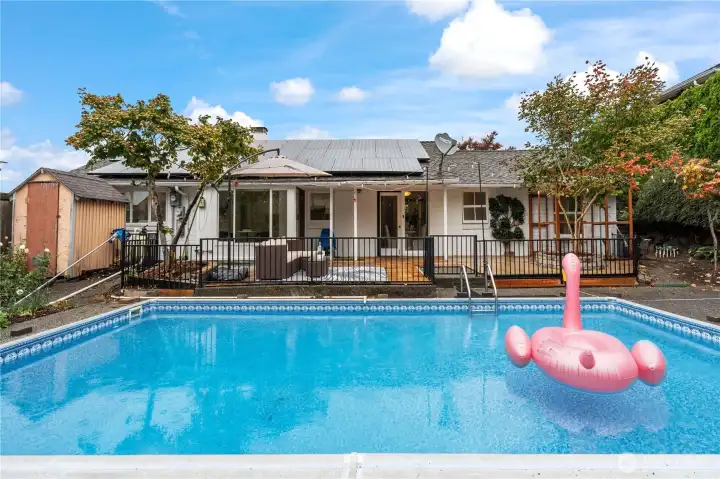 Welcome to Vuecrest—one of Bellevue’s most desirable neighborhoods where timeless charm meets modern convenience. This beautifully updated rambler offers effortless living with newer quartz kitchen countertops, updated bathroom fixtures, fresh flooring, and paint. Enjoy an ideal lot with a large, lush yard, sparkling renewed swimming pool, and spacious new deck—perfect for outdoor living. Paid-off solar power system means minimal electric bills. new attic insulation. newer home appliances. Zoned for Medina Elementary and just minutes from world-class shopping, dining, and cultural attractions. A peaceful retreat just 10 minutes to downtown Seattle.