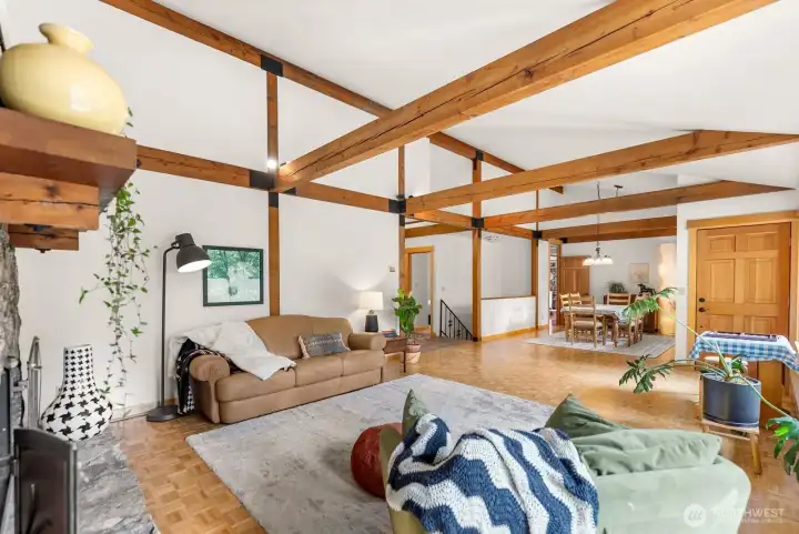 Twisp-River-Valley Timber-Frame Home is all that! Imagine, being in a peaceful, quiet place on 5 Acres, bordering thousands of acres of forest land, in a stunning 4 Bed/3 Bath home. 1456 sf Main level, Living room speaks comfort, as you relax in front Methow-rock fireplace. Dining room enjoys glowing hardwood floors reflecting natural light through big picture windows. Large Kitchen, solid wood cabinets, hardwood floors, w/Pellet fireplace brick hearth & dining table. Wood deck off Kitchen for Summer outdoor dinners. Primary bed ensuite Bath, walk-in closet, private terrace. Spacious Bonus room plumbed for wet-bar. Wood Fireplace. 1456 sf Walk-out Daylight basement has white wool-carpet for ultimate luxury.2-car Garage. Root cellar.