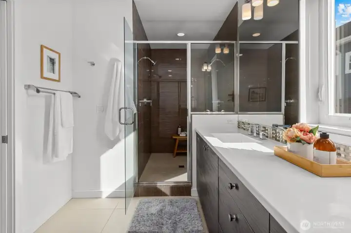 Welcome to the Adrmiral District of West Seattle! This modern home has it all. Nestled on a tree-lined street, enter the private fenced yard to find low maintenance space with room for pets. Massive windows and high ceilings let the light stream in no matter the weather. Open concept kitchen has spacious walk-in pantry, gas stove, newer refrigerator and Bosch dishwasher. 3 bedrooms on one floor including massive primary suite with walk-in closet and luxurious bath. Upstairs you'll love lounging in the family room with wetbar. Enjoy every sunset over the Olympics from the west-facing deck. Attached 2 car garage and easy access to Alki Beach, Downtown Seattle, and South Lake Union. Blocks from restaurants, coffee shops, Met Market.