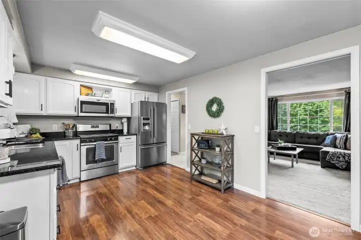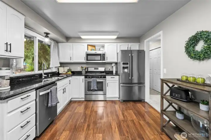 Welcome to this inviting 3-bedroom, 2.5-bath Bremerton home filled with thoughtful details. The kitchen features granite counters, stainless steel appliances, and a gas range. Natural light pours into the living room through oversized bay windows, creating a bright and welcoming space. Enjoy a cozy evening by the wood-burning fireplace, with one upstairs in the main living room and another in the spacious downstairs bonus room. Step out from the kitchen to a private deck overlooking the fully fenced yard, ideal for relaxing or hosting gatherings. Conveniently located to shopping, schools, bases, ferries, and highways.
