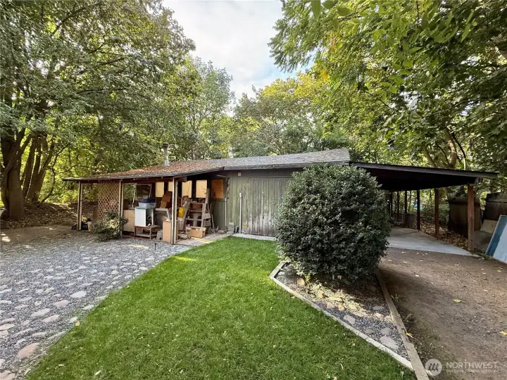 Seeking an excellent 2 bed/1 bath home with a sense of seclusion? This property is a gem, nestled along the seasonal Patit Creek. It's been meticulously updated for peace of mind, boasting a metal roof, stylish tile in both the bathroom and kitchen, and energy-efficient heating/cooling. Car enthusiasts or hobbyists will appreciate the extra deep carport and detached workshop. Relax outdoors on the patio under the shade trees and enjoy the convenience of underground sprinklers and ample off-street parking. Don't miss this unique, well-maintained home!