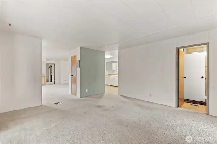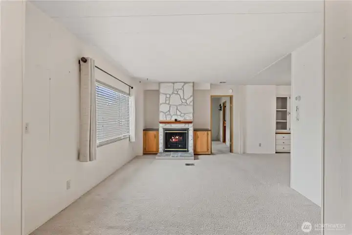 Well cared for double wide manufactured home in a 55+ park with a centralized location, close to shopping, health care and recreation centers. Home features a living room with a wood burning fireplace, a dining room and family room. Kitchen has extra storage, and both bathrooms are updated. Primary bedroom has two closets, and is on the opposite side of the home from the guest bedrooms. Bonus parking - with carport parking and off street parking for 4 cars. Newer HVAC for your peace of mind. Comfortable home for a great value.