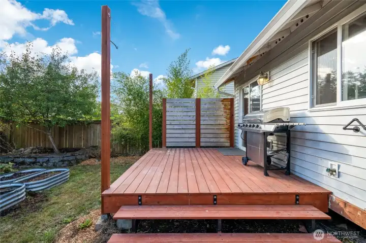 Desirable Sunnyside/Harbor View Village rambler w/beautifully landscaped south-facing backyard. Gleaming cherry hardwood floors, vaulted ceilings, & thoughtfully designed floor plan. A light-filled kitchen features a pantry & newer stainless appliances, opening to the picturesque backyard. Fresh interior paint enhances the move-in ready appeal. A large deck creates the perfect outdoor entertaining space, while an oversized one-car garage w/a storage loft offers endless organizational possibilities. Established rhododendrons & maples add character & charm, & the covered front porch is perfect for relaxing outdoors. With a neighborhood park & waterfront trail access just across the street, this home combines comfort, convenience, & lifestyle.