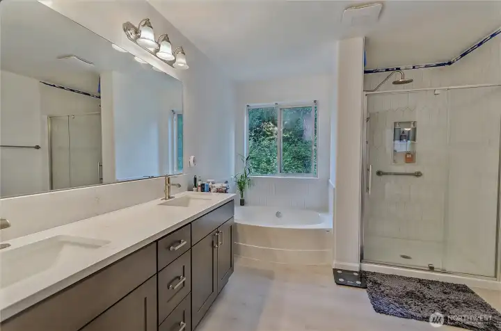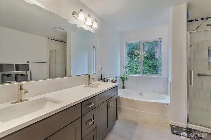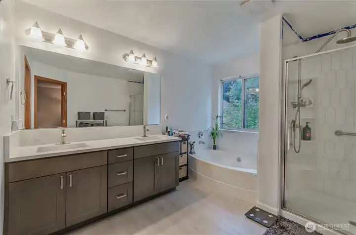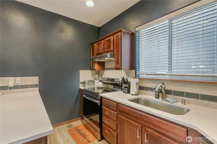 Lovely 3 Bedroom home in South Hill neighborhood features recent kitchen and full bath remodels. Kitchen includes stainless appliances, quartz countertops and vinyl plank flooring. Upstairs find a spacious loft flanked by two bedrooms and the primary suite. The bathrooms are so beautiful with new counters, hardware, flooring and glass shower doors. Washer and dryer included. Must see! Neighborhood includes park, ball court and play toys.