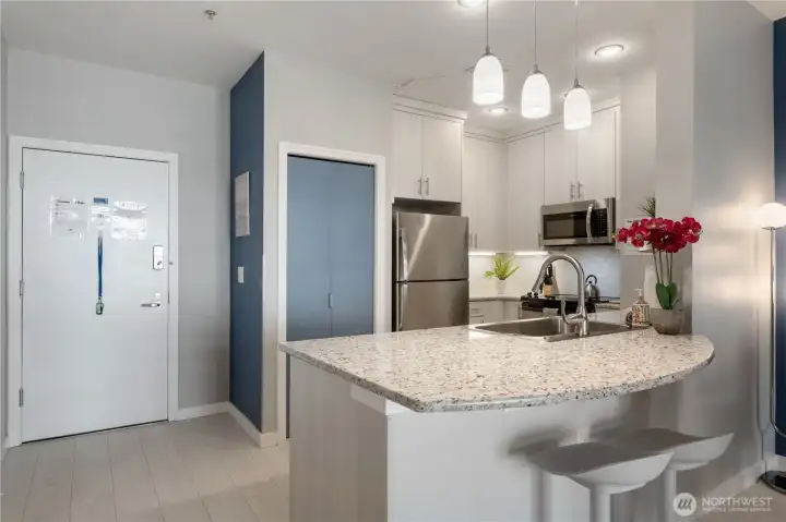Tastefully remodelled 2 bedroom located in the heart of Seattle's Belltown neighborhood. Live a few steps away from Seattle's iconic attractions, the waterfront, exquisite dining, entertainment and shopping venues! The unit faces the serene inner courtyard garden of the condominium building and offers two balcony decks. Resort style amenities include indoor heated pool, hot tub, sauna, fitness center, courtyard garden, two rooftop decks with BBQs, bike storage and professional concierge. Secure garage parking and storage included. Exceptional investment opportunity allowing Short-Term Rentals with no rental cap.