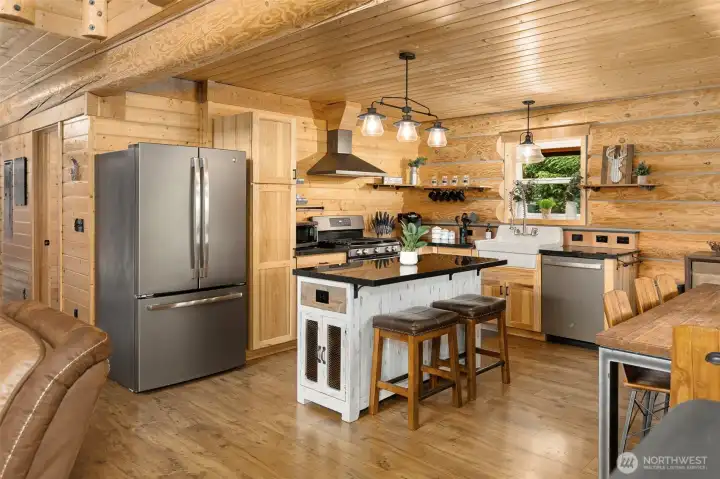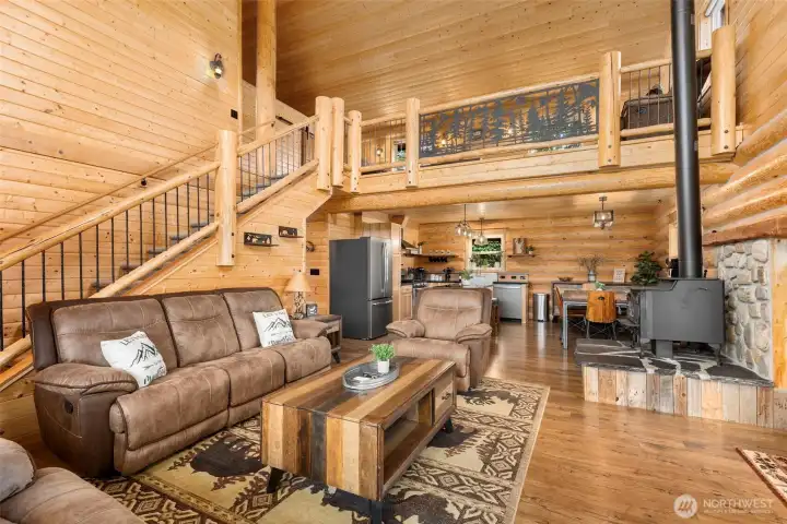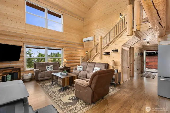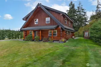 Mountain View Log Home built by NorthWest Log Homes, offering the perfect balance of cabin warmth & modern comfort. The great room showcases soaring 25’ vaulted ceilings, a cozy fireplace, and abundant natural light throughout. The kitchen features stainless steel appliances, while large bedrooms and thoughtful touches across every space create a welcoming retreat. Situated in the Olympic Rain Shadow, enjoy breathtaking mountain views and the peaceful sound of McDonald Creek along the east side of the property. The property includes a full RV hookup and parking, plus a versatile shop with garage parking, 220V power, and room for entertaining. Conveniently close to Sequim, Port Angeles, lavender farms, the Olympic Discovery Trail, and more.
