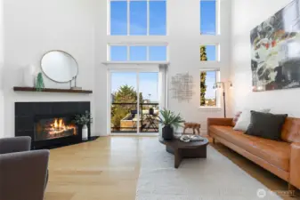 Oh, what a view! Watch sunsets behind the Space Needle and Olympic Mountains from this light-filled, top floor NY-style loft. Enjoy soaring 20 ft ceilings, floor-to-ceiling windows, gleaming bamboo floors, fresh paint, new carpet, and a cozy wood-burning fireplace. The kitchen features granite counters, stainless appliances, and bar seating. Includes three spacious closets, in-unit W/D, balcony, and a flexible second bedroom. Comes with the rare convenience of TWO storage units and TWO parking spots (EV charging available). The building offers a lobby entrance, Amazon lockers, elevator, + outdoor patios with BBQs for entertaining. Pet-friendly w/ no rental cap, and located near the Light Rail and vibrant Capitol Hill shops and restaurants.