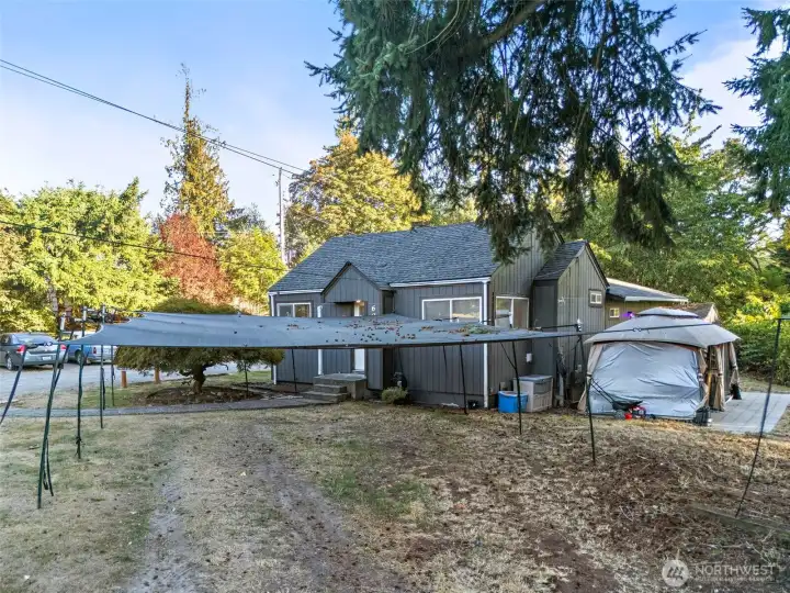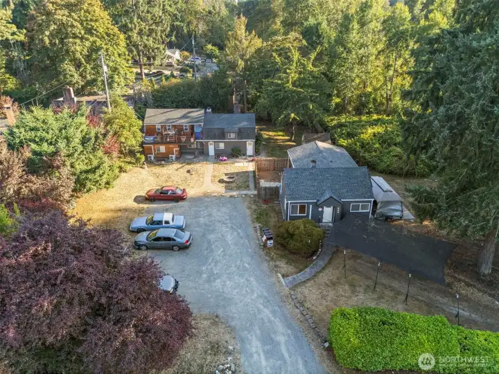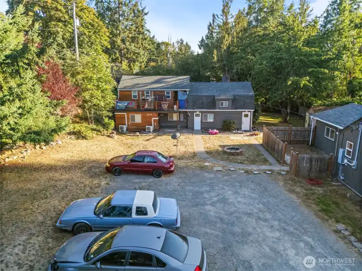 Rare find: a large Tacoma property outside city jurisdiction with flexible living and income. Enjoy a renovated 2BD/2BA single-family home with oversized yard, new 8ft x 8ft hot tub, private 2-car carport, and full RING security (interior & exterior). Behind it, a detached triplex offers three updated units with a 6-car gravel lot. Big-ticket updates: new roof and complete electrical in 2019, plus fresh cosmetic touches. NO HOA. On a sprawling 0.89-acre parcel with room to explore a DADU or additional unit. Small pond on back corner of property. Quiet, tucked-away street yet close to everything. VA assumable at 5.125%. Live in the house and let tenants help pay the mortgage! 2GB Fiber Internet on Property!