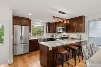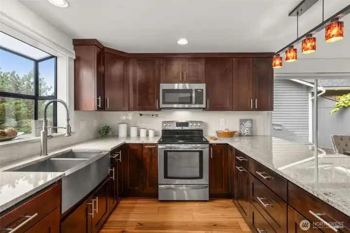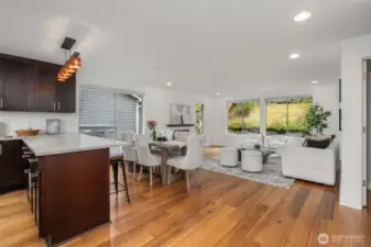 Welcome to this beautiful West Seattle home offering the perfect blend of comfort, style & convenience. Features 3 beds & 2 baths, an open-concept layout with an updated kitchen that flows seamlessly into the dining & living areas. Step outside to your new upper deck & take in stunning western-facing sunsets over the Olympic mountains—grab your favorite beverage & unwind while watching the sky change colors. You'll love starting each day with coffee or tea on the private & serene back porch. The lower level offers a 2nd living rm & separate nook perfect for an office, exercise or playroom. Includes low maintenance hard surface flooring & 1 car garage. Located close to amazing amenities—parks, the beach, dining & access to downtown Seattle.