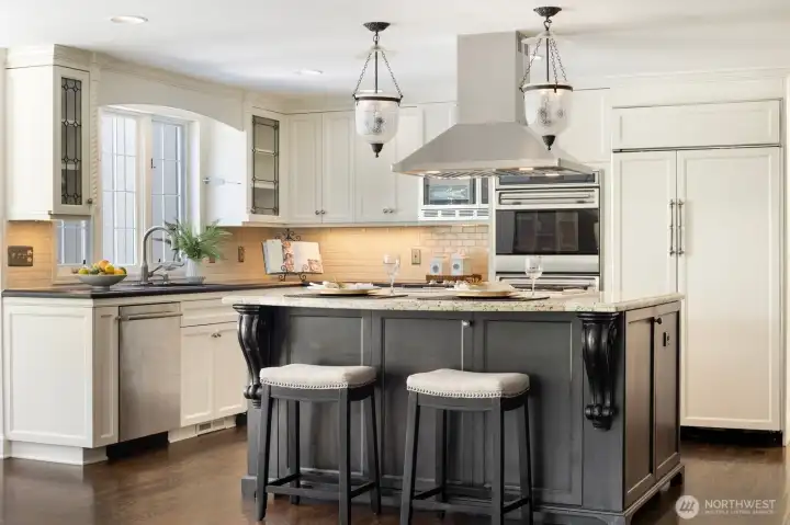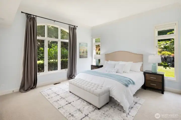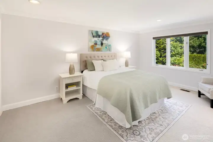 Live inspired in this timeless Medina home, where classic elegance meets modern upgrades. Nestled on a private, park-like third of an acre, it offers serenity just moments from downtown Bellevue. A quiet lane leads to a circular drive framed by lush hydrangeas. Inside, the gorgeous primary suite boasts a marble bath, while all bedrooms feature ensuite bathrooms. A spacious media/rec room adds versatility. New roof, furnace/AC, and water heater complement the freshly painted exterior. Medina residents enjoy peaceful walks, top-tier schools, parks, and lake access, making this home a perfect blend of comfort and convenience. It offers refined living in one of the Eastside’s most sought-after neighborhoods.