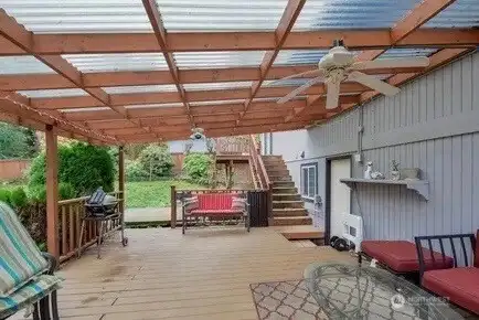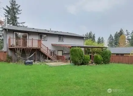 Welcome to your new lake home! Come see what this beautiful Lake Tapps gem has to offer. Large open concept kitchen attached to dining and living area, with a large bright bay window. The three bedrooms are nestled in the upper living area with two full baths. Downstairs you'll walk into a fully finished basement with a wet bar, fireplace and a third bath/laundry room w/ shower, which provides endless possibilities for multi-generational living! Quiet, fully fenced backyard, greenbelt adjacent. A gardeners dream, with various producing fruit trees, and a peaceful covered lower deck to take this all in! The community boasts access to five private parks with boat docks, friendly events & off leash dog fun for everyone!