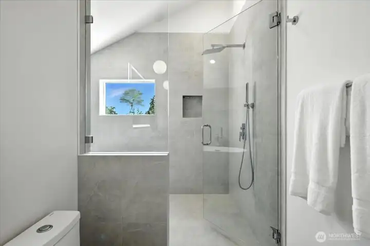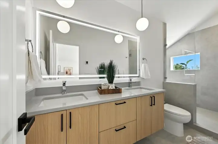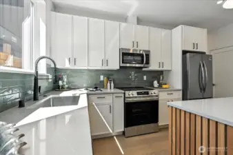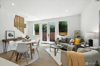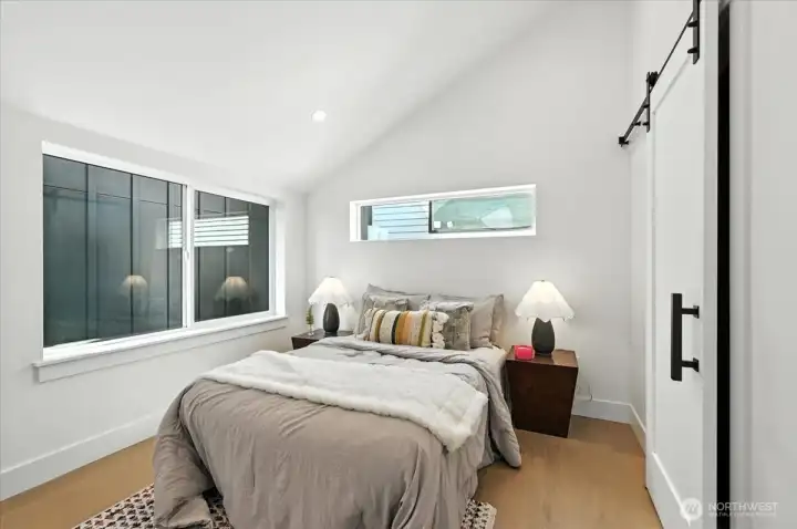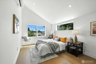 NEW 2 story home with heated bike garage/flex room. 2nd of 3 new homes. South East exposure fills the home with natural light. Spacious living room and Chef's kitchen with upgraded cabinets, quartz counters, LED lighting and sliders leading to a private patio bringing the outdoor space in, perfect for entertaining. Space for office off the entry and powder room on main. Thoughtfully configured to maximize flow, function, style and efficiency. Stay cool with A/C in every room. Wide plank engineered hardwood throughout this elegant home. Bedrooms and bathrooms with vaulted ceilings are on the 2nd floor. Heated floors, designer tile work and custom tub/shower glass in all bathrooms. Walk to grocery stores, restaurants and Grand Central bakery.